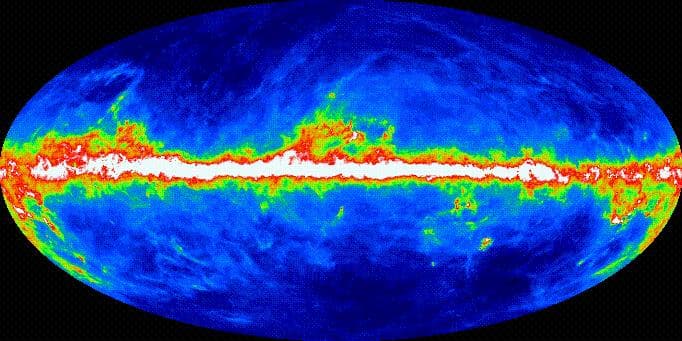 Blue is low intensity, red and white are high-intensity regions. Figure from Schlegel, Finkbeiner, & Davis (1998)
